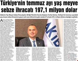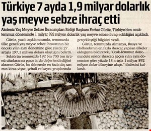 Türkiye'nin Temmuz Ayı Yaş Meyve Sebze İhracatı 197,1 Milyon Dolar ANA SAYFAMEDYABASINDA AKİB narod_attachment_links.html9,30 KB PAYLAŞ Basında AKİB AHBİB Başkanı Veysel Memiş: Ekimde Yüzde 8 Artışla 195,9 Milyon Dolar İhracat GerçekleştirdikTürk Mobilyasına Fas İlgisiTürkiye, Ekim Ayında Yaş Meyve Sebze İhracatını Yüzde 31 ArtırdıTürk Mobilyacıları ABD'nin Yolunu Tuttu Hedef, Yeni İş Birlikleri ile İhracatı ArtırmakAfrika Pazarı Türk Demir-Çelik Sektörüne Alternatif OlduTürk Mobilyasında Afrika RüzgarıBaşkan Kılıçer: İhracatımızı Artırmak İçin Yeni Pazarlara YoğunlaşıyoruzATHİB Başkanı Fatih Doğan: Devletimizden Acil Destek Bekliyoruz'ATHİB Başkanı Fatih Doğan: Devletimizden Acil Destek BekliyoruzHububat ve Bakliyat İhracatında 2022'nin Yıldızları ÖdüllendirildiTürk İhraç Ürünleri Venezuela Pazarında Vitrine ÇıktıAHBİB Başkanı Veysel Memiş: Ağustos Ayı İhracatımız Yüzde 21 Artışla 211,2 Milyon Dolar